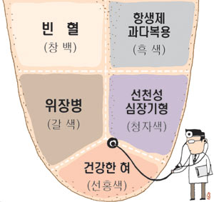 - 혀에 세로줄이 있으면 여성은 류머티즘 신호.