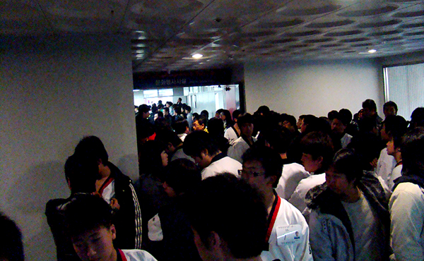 그나마 몇 안 되는 자리를 협회 관계자들이 빼앗아 가버렸다. 관계자들조차 앉을 자리가 없었던지라 구경하려고 앉아 있던 학생들에게 좀 나가 달라고 부탁했다. 그들은 당황해하며 얼굴 빨개져서 나갔다. 애써 친구 따라왔을 텐데 자리 뺏기고, 구경도 못 하는 처지가 되었을 것이다.