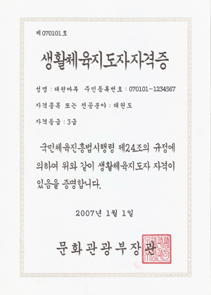 태권도 지도자의 가장 기본적인 자격증하면 역시 태권도 사범지도자 자격증을 꼽을 수 있다.