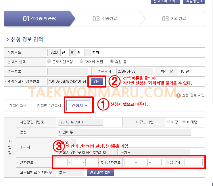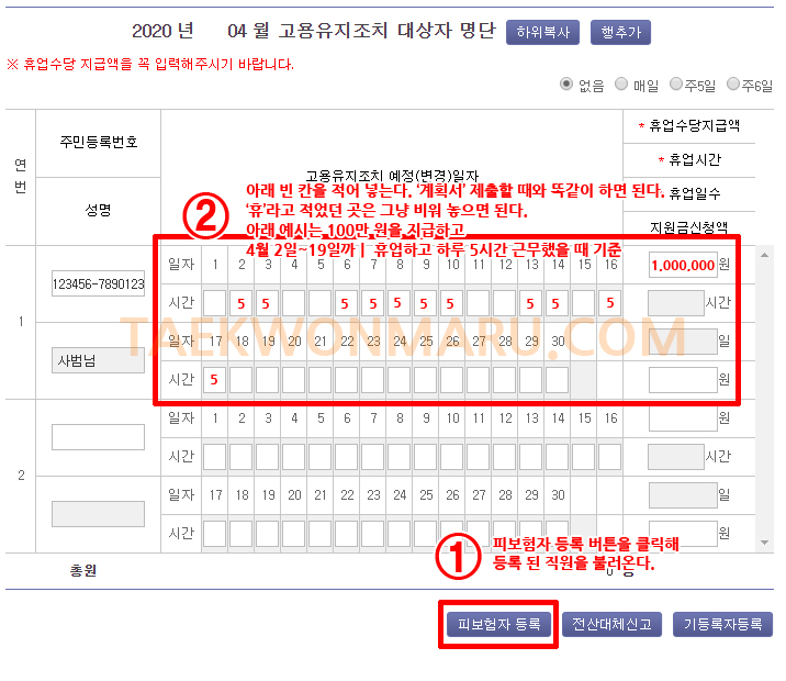 고용유지지원금을 신청하는 방법 #5 지원금 신청서 작성