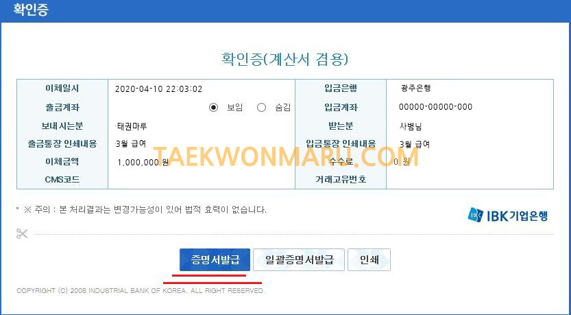 - 급여를 준 통장 거래 내역을 사진으로 찍어 캡처해서 보내면 된다.