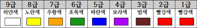 내용이 너무 많아 다 살펴보지는 못했지만, 교육 표준화를 위해 당연히 유급자 띠의 체계에 대한 내용도 있었다.