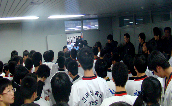 심사를 엄격히 보는 것은 좋지만, 이번 심사의 장소와 진행은 아쉬웠다. 사직동 아시아드 주 경기장 안에 태권도 경기장이 있는지 처음 알았다. 상태를 봐서는 모 팀의 연습장인 것 같다. 아무튼, 심사를 보러 온 사람, 지도자, 학부모와 친지들까지 많은 사람을 수용하기엔 턱없이 부족한 공간이었다.